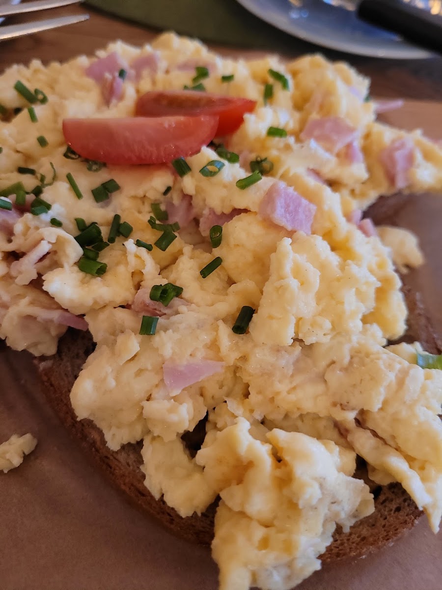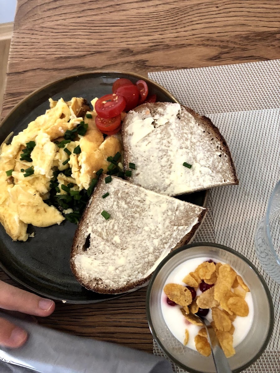Regulars tend to arrive in the late morning or afternoon, often choosing a cappuccino or latte macchiato paired with a slice of freshly baked cake or a homemade waffle topped with cherries and cream—a treat reminiscent of home baking. The café also serves breakfast staples such as scrambled eggs and quiche, supporting a morning crowd looking for a casual start with quality ingredients.